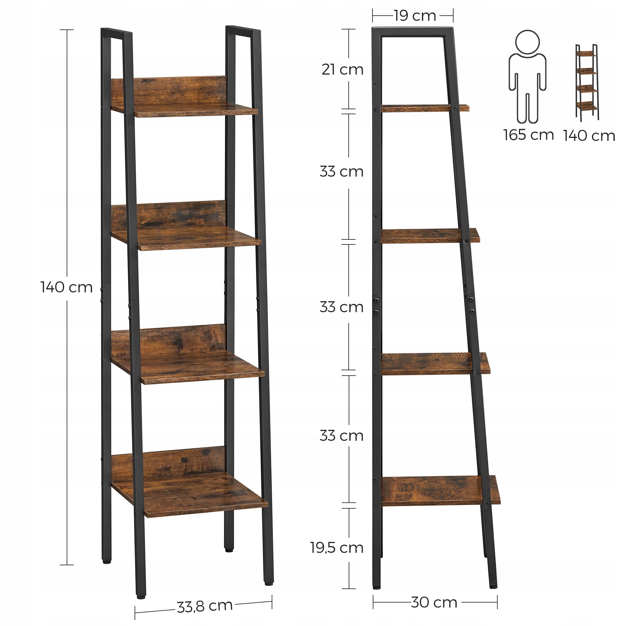 Stylowy regał drabinkowy VASAGLE to idealne połączenie funkcjonalności i designu w stylu industrialnym. Cztery poziomy oferują dużo miejsca na książki, dekoracje, rośliny czy akcesoria, jednocześnie nadając wnętrzu nowoczesny charakter.
