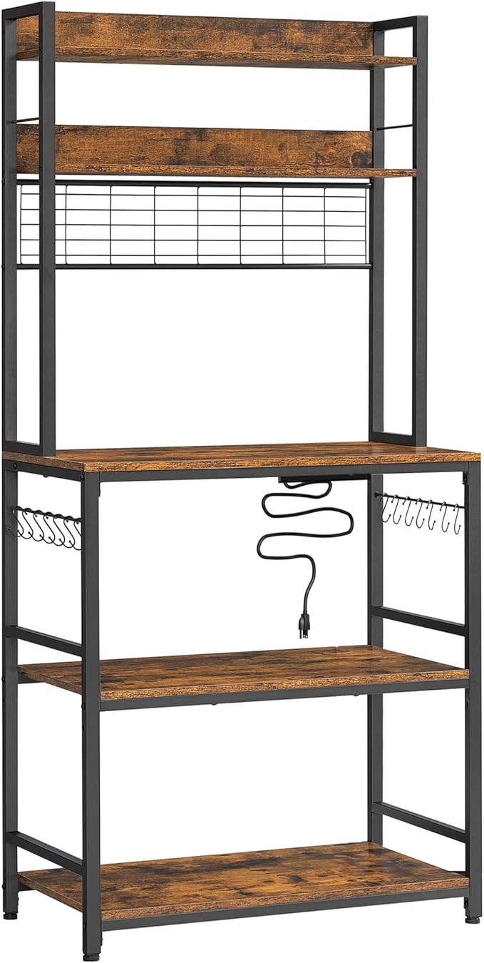 Funkcjonalny regał kuchenny z wbudowanymi gniazdkami, który łączy industrialny styl z maksymalną wygodą użytkowania. Idealny na mikrofalę, ekspres do kawy, toster i wszystkie kuchenne akcesoria.