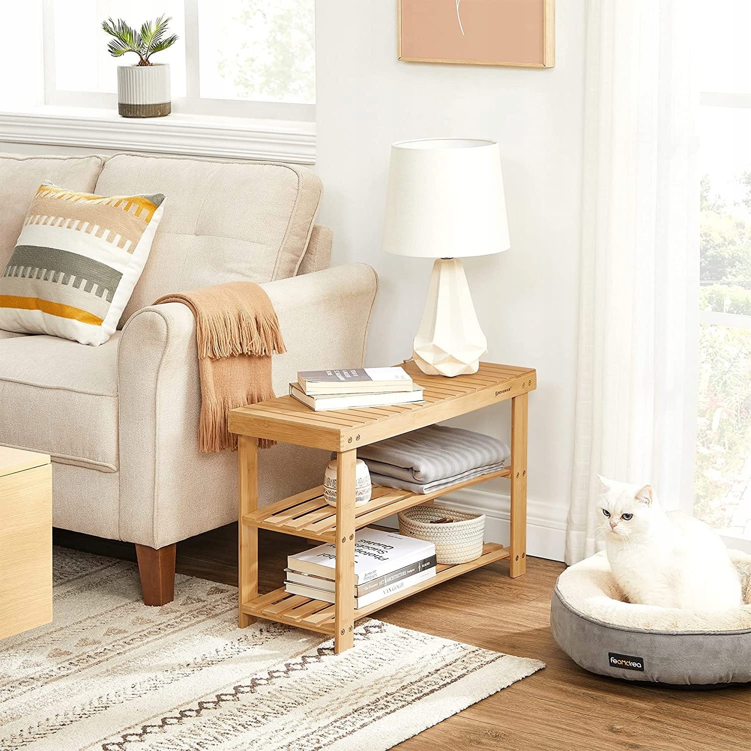 Regał na buty bambusowy ławka siedzisko półki 70 cm SONGMICS