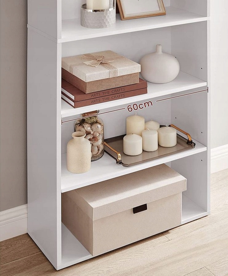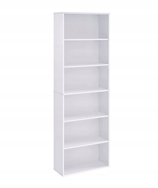 Wąska konstrukcja pozwala maksymalnie wykorzystać przestrzeń pionową, co czyni go idealnym rozwiązaniem do mniejszych pomieszczeń. 6 pojemnych półek zapewnia dużo miejsca na książki, dekoracje czy rośliny.