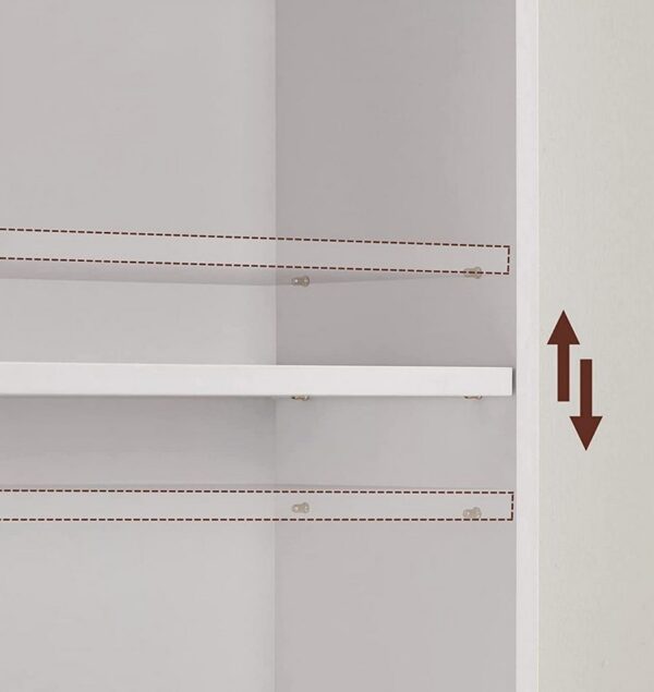 Regulowane półki umożliwiają dostosowanie wysokości do różnych przedmiotów, dzięki czemu z łatwością uporządkujesz swoje rzeczy. Solidna konstrukcja z płyty wiórowej gwarantuje trwałość, a możliwość przymocowania do ściany zwiększa bezpieczeństwo użytkowania.
