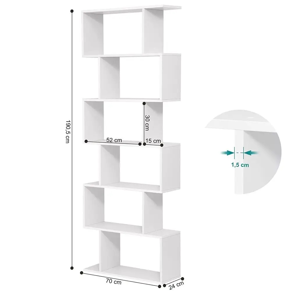 Regał na książki 6 poziomów biały 190 cm półka VASAGLE