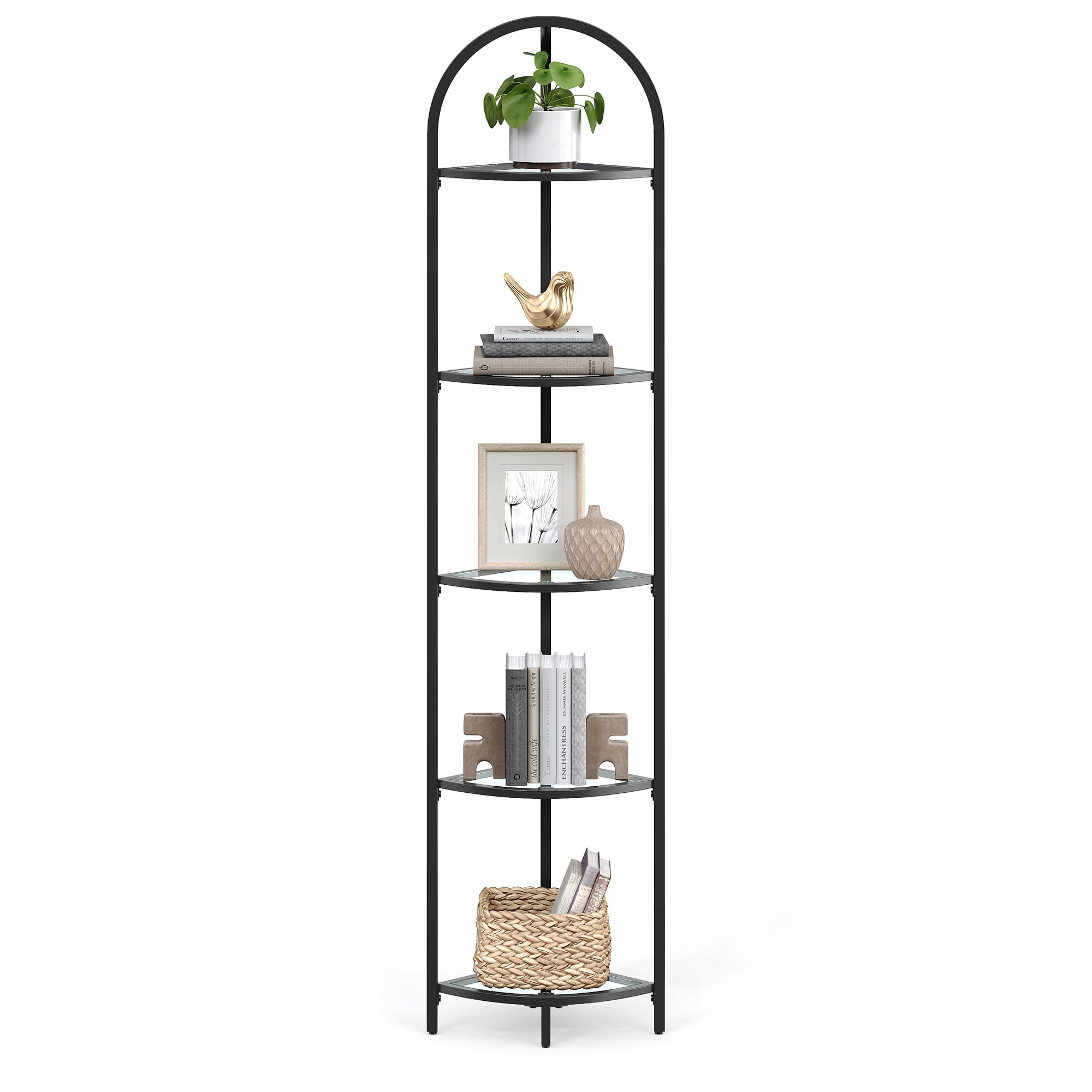Regał narożny 5 półek szkło hartowane 158 cm czarny VASAGLE
