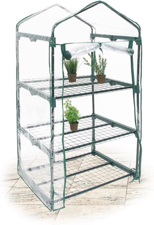 Dzięki szklarni na balkonie i w ogrodzie można stworzyć najlepsze warunki do uzyskania obfitych plonów. W zajmującej niewiele miejsca szklarni foliowej młode rośliny są utrzymywane w cieple i chronione do czasu, gdy będą gotowe do wysadzenia na grządkę. Małą cieplarnię można również wykorzystać do uprawy ziół kuchennych i kwiatów ozdobnych. Odporny na warunki atmosferyczne domek składa się z solidnej ramy z rur stalowych i przezroczystej plandeki z folii PVC. Dwa poziomy zapewniają miejsce dla wielu sadzonek. Ta szklarnia idealnie nadaje się na balkon i stanowi miły prezent dla ogrodników-hobbystów.