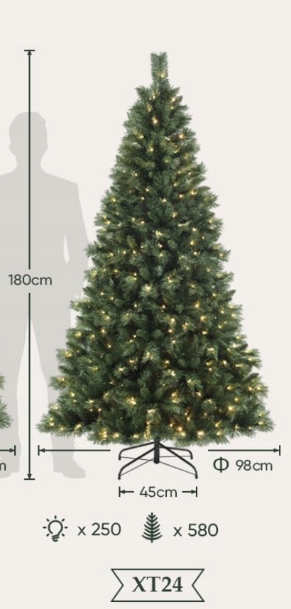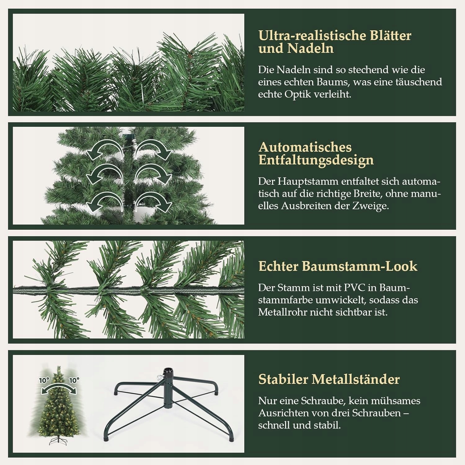 ✅ Sztuczna choinka, plastikowa choinka, kolor: zielony, PVC (ognioodporny polichlorek winylu), wysokiej jakości sztuczne igły sosnowe, łącznie 580 gałęzi, całkowita wysokość (wraz ze stojakiem): 180 cm. LED: 250.