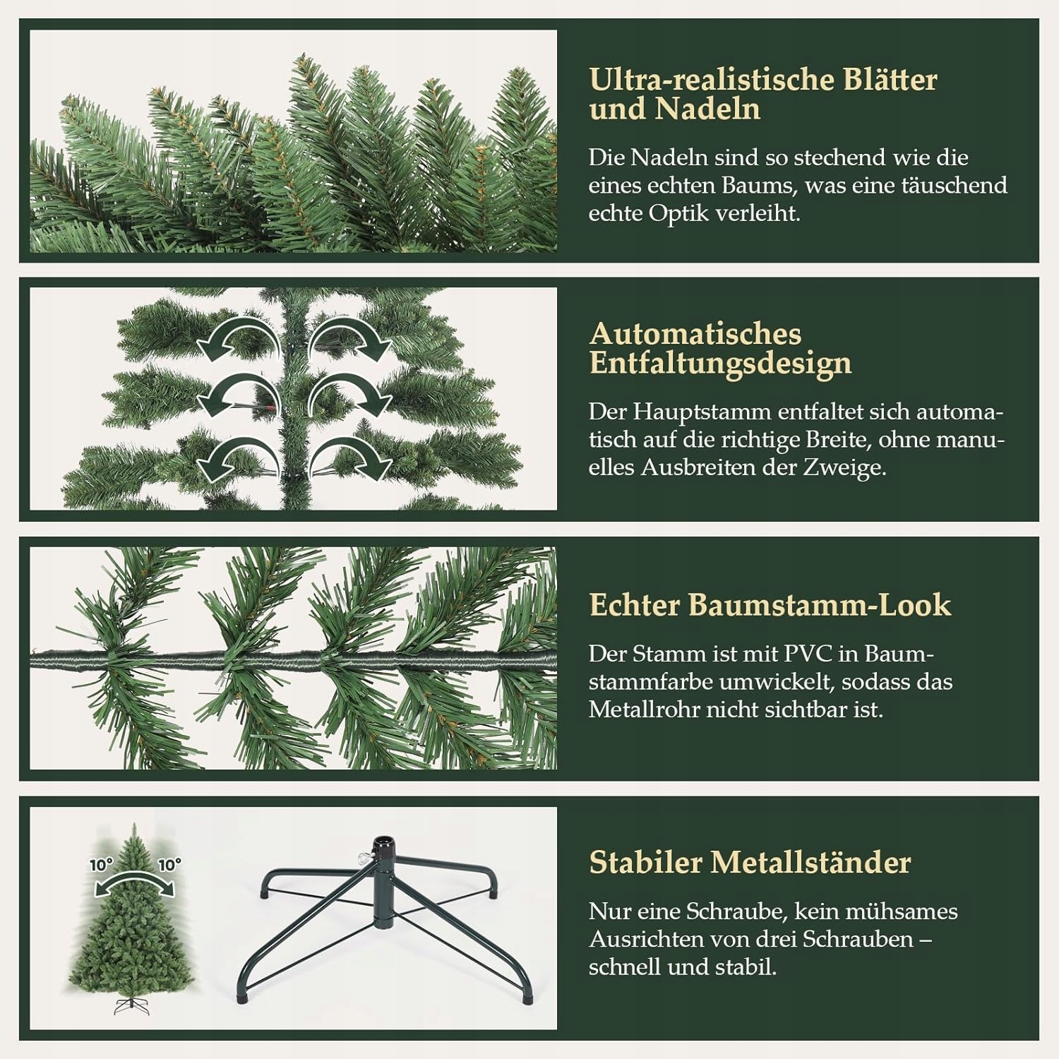 ✅ Łatwy montaż: dzięki systemowi składania drzewko można rozłożyć w kilka minut i równie łatwo je ponownie schować. Nie wymaga skomplikowanego składania – wystarczy rozłożyć i cieszyć się nim.