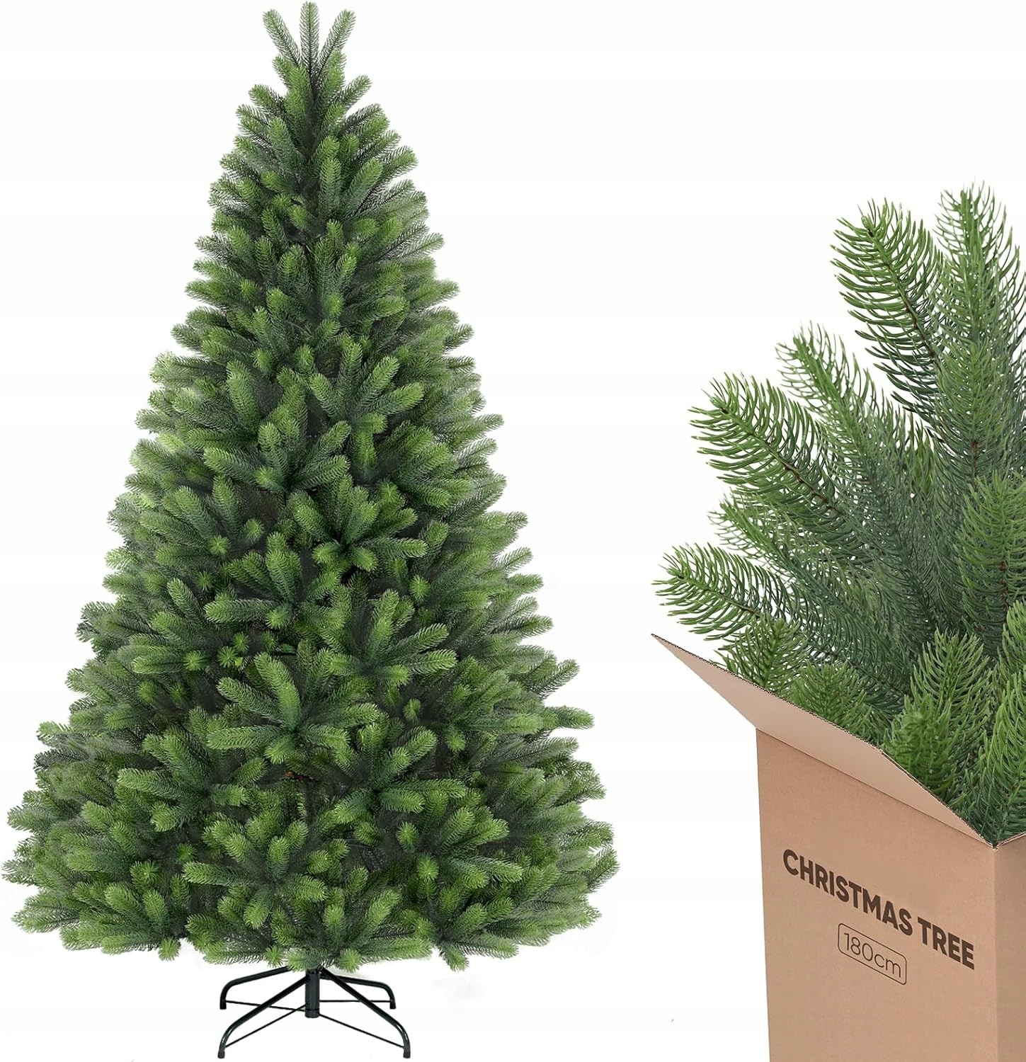 ✅ Sztuczna choinka 180 cm, plastikowe drzewko, kolor: zielony, z odlewu wtryskowego PE, wysokiej jakości sztuczne igły sosnowe, łącznie 762 gałązki.