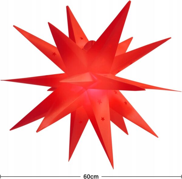✅ Unikalna konstrukcja: Gwiazda 3D ma średnicę 60 cm i składa się w sumie z 18 trwałych punktów, co czyni ją stylowym przyciągającym wzrok