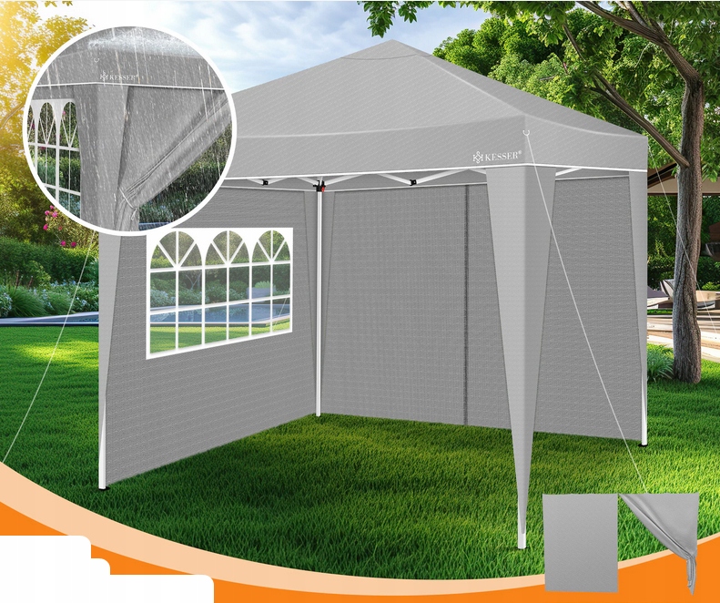 ✅ KESSER 2x Ściany boczne do pawilonu 3×3 m – wodoodporne, z zamkiem błyskawicznym i oknem