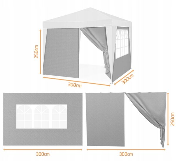 - Wymiary: Pasuje do pawilonów o rozmiarze 3×3 m