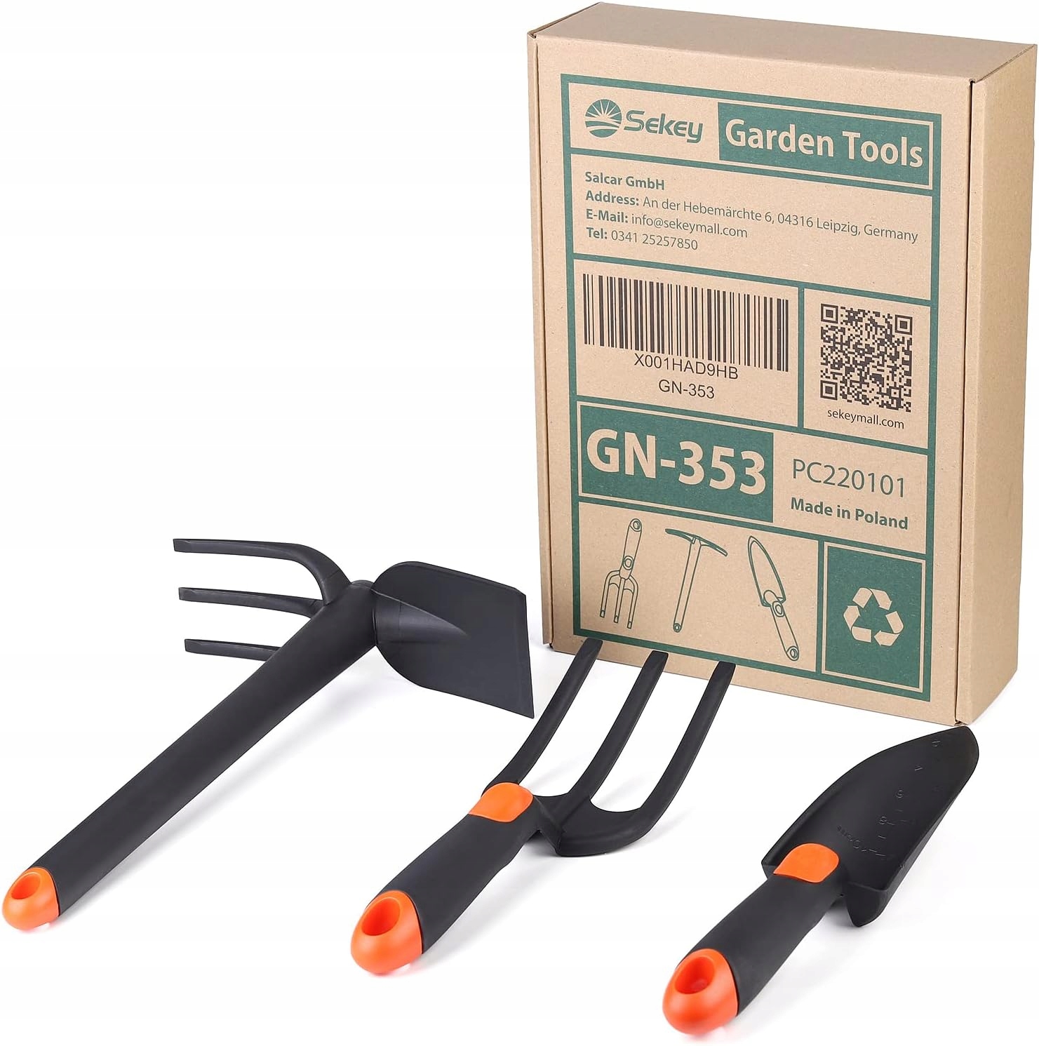 Sekey 3-częściowy zestaw narzędzi ogrodowych z łopatką ręczną, widelcem do kwiatów, podwójną motyką