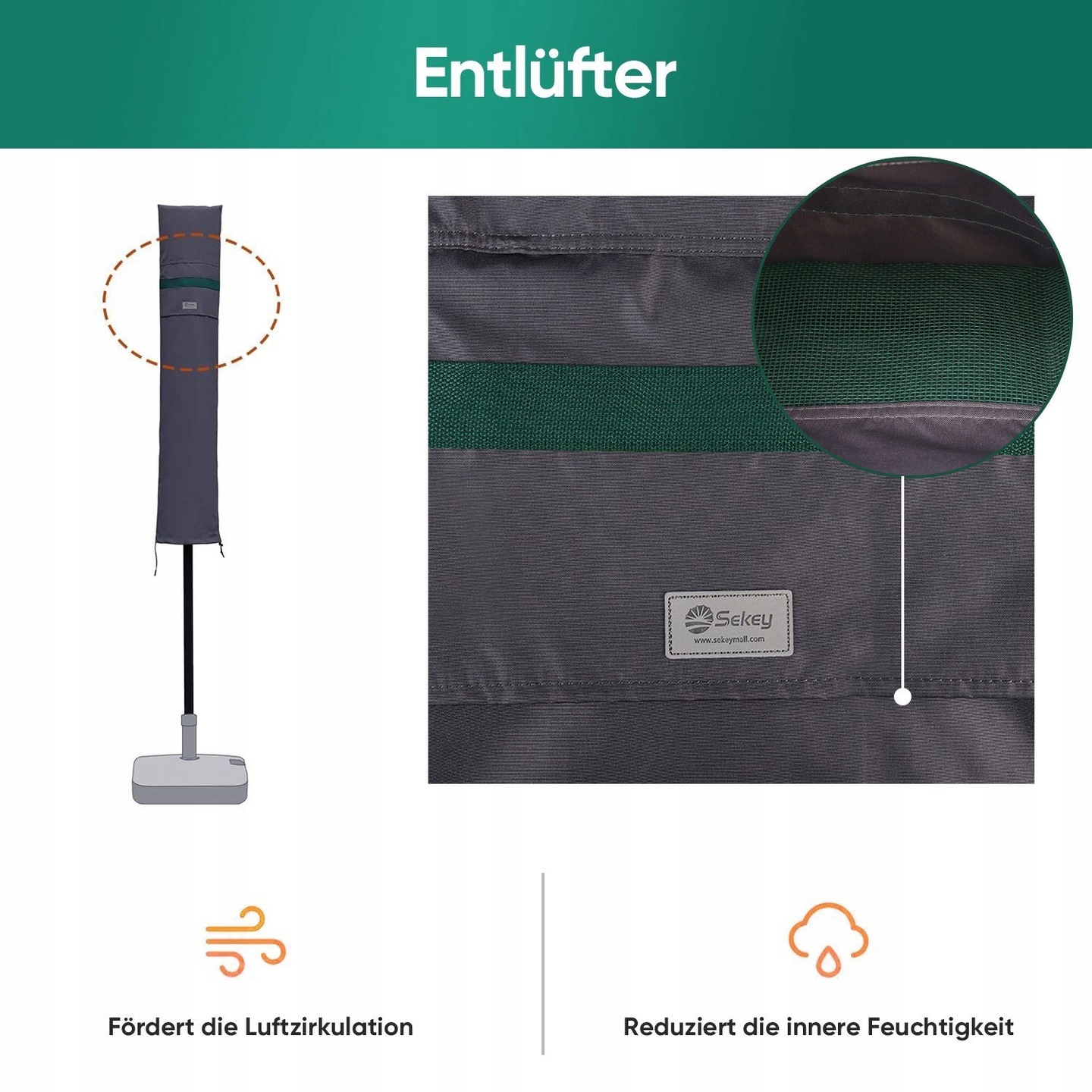 Sekey Pokrowiec Ochronny na Parasol Przeciwsłoneczny, Kolor Ciemnoszary, 136 cm x 27/35,5 cm