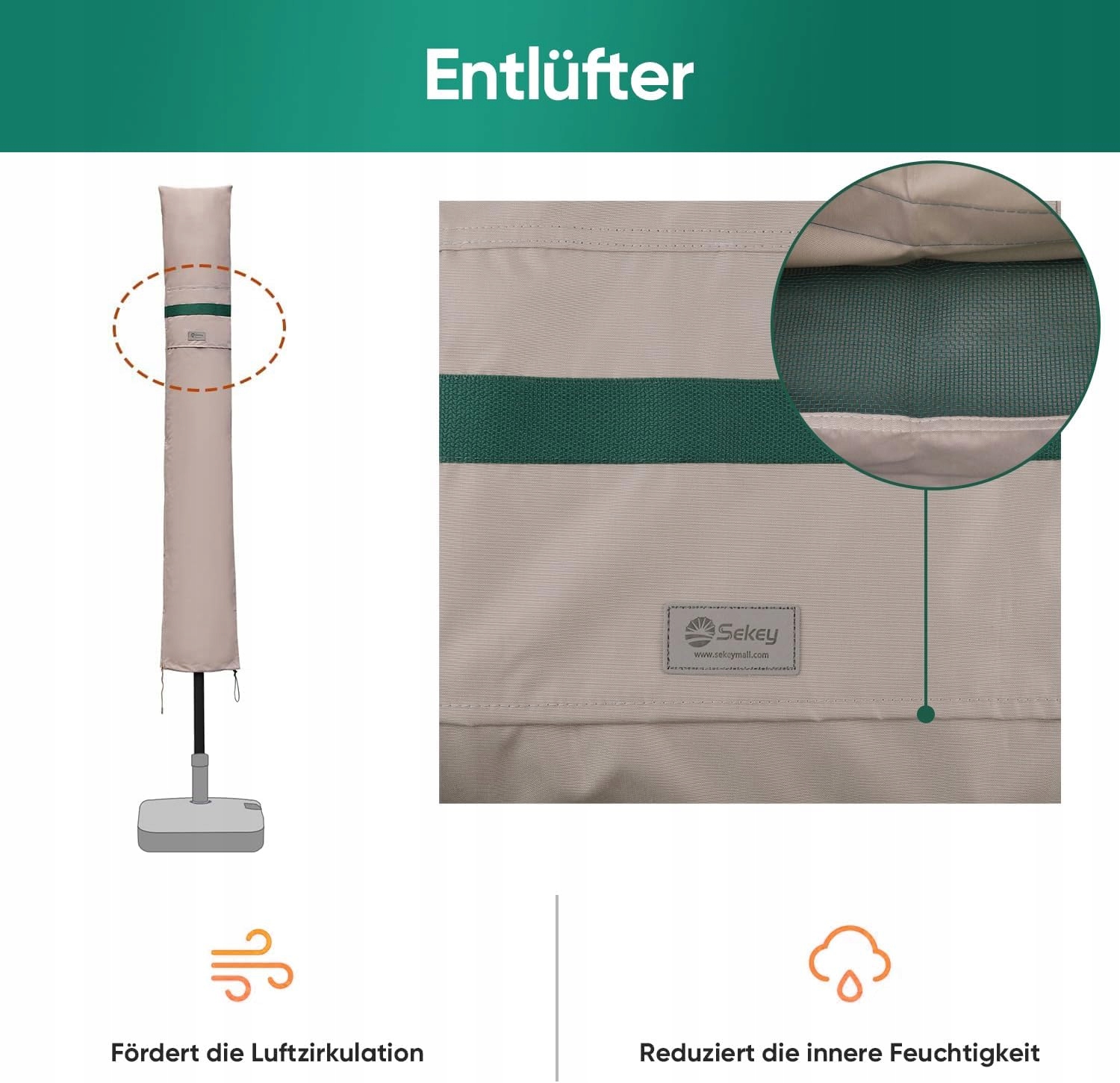 Sekey Pokrowiec Ochronny na Parasol Przeciwsłoneczny, Kolor Khaki, 175 cm x 27,5/35,5 cm