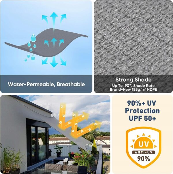 ✅ OCHRONA PRZECIWSŁOŃCOWA, CIEŃ – Unikalna dzianina HDPE blokuje do 90% szkodliwych promieni UV słońca. Unikaj uszkodzeń skóry przez promieniowanie UV i ciesz się odcieniem. Jednocześnie pozwala na przejście odrobiny światła, nie czyniąc obszaru zbyt ciemnym. Dzięki niemu możesz cieszyć się przyjemnym zacienionym leżakiem na patio lub w ogrodzie.