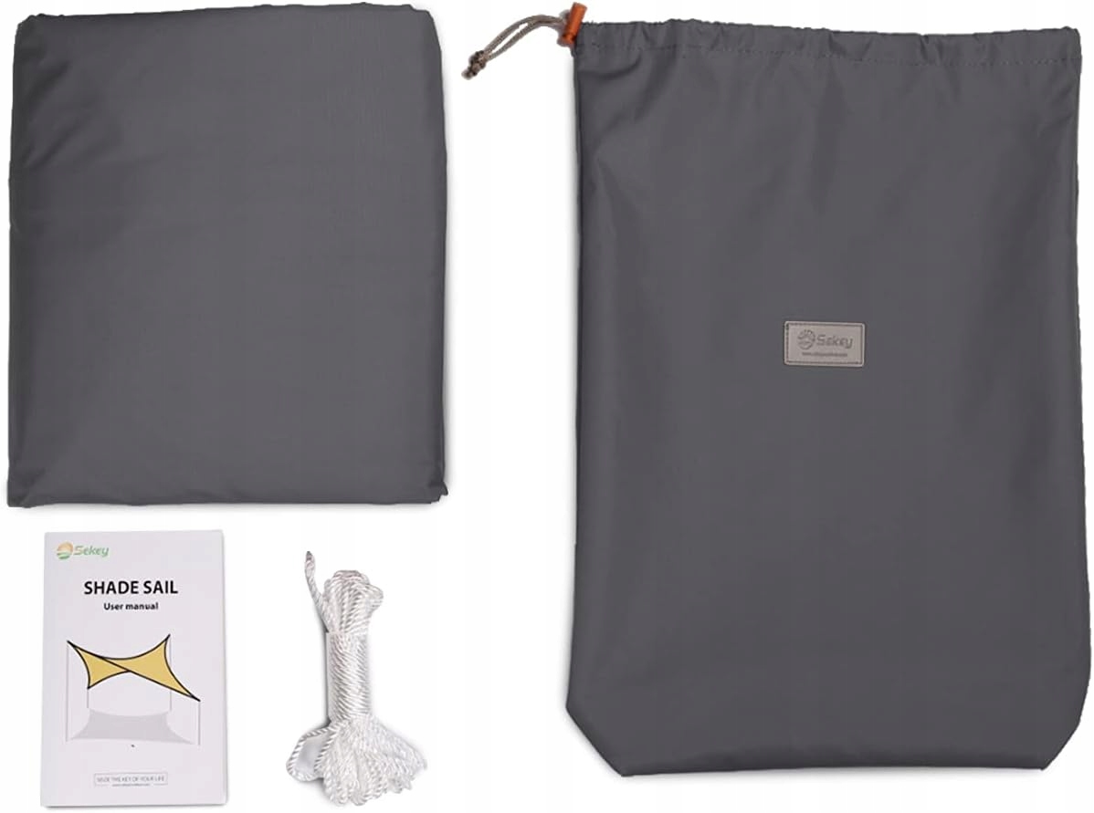 ✅ W zestawie zawiera długie liny i metalowe D-ringi. Ze względu na wklęsły kształt środkowa szerokość żagla jest krótsza, a rzeczywista powierzchnia cieniowania mniejsza. Dane dotyczące rozmiaru to odległość między punktami korony poziomych narożników, a nie długość i szerokość rzeczywistego obszaru cienia. Zaleca się mieć odległość około 45 – 60 cm od rogu tkaniny do punktu ściany/usztywnienia. Kąt montażu wynosi 20 – 42 stopnie, aby deszcz mógł spłynąć.