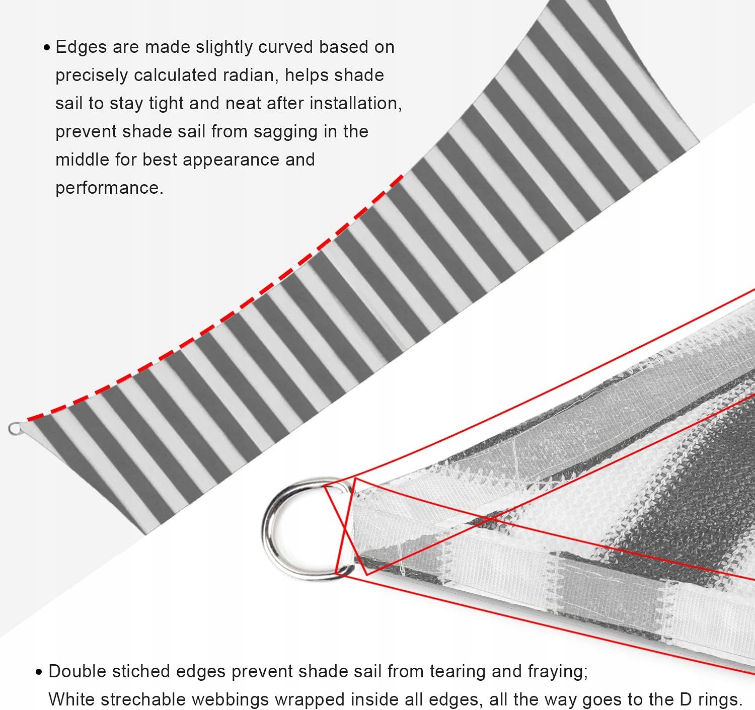 ✅ BOGATY WYBÓR ROZMIARU – Dane dotyczące rozmiaru odnoszą się do odległości między górną częścią poziomych rogów, a nie długości i szerokości rzeczywistego obszaru. Wklęsły kształt oznacza, że żagiel ma krótszą środkową szerokość i mniej rzeczywisty obszar cienia. Zobacz zdjęcia, aby uzyskać informacje o rozmiarze.