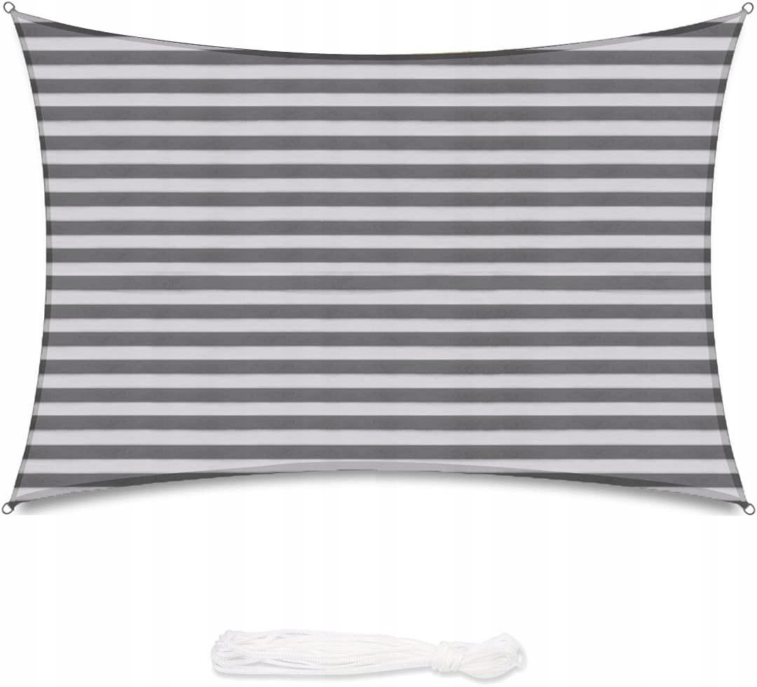 Sekey Prostokątny żagiel przeciwsłoneczny 3×3 m HDPE Przepuszczalna ochrona UV Trwała i oddychająca na patio, ogród, patio, z liną, biało-szary w paski