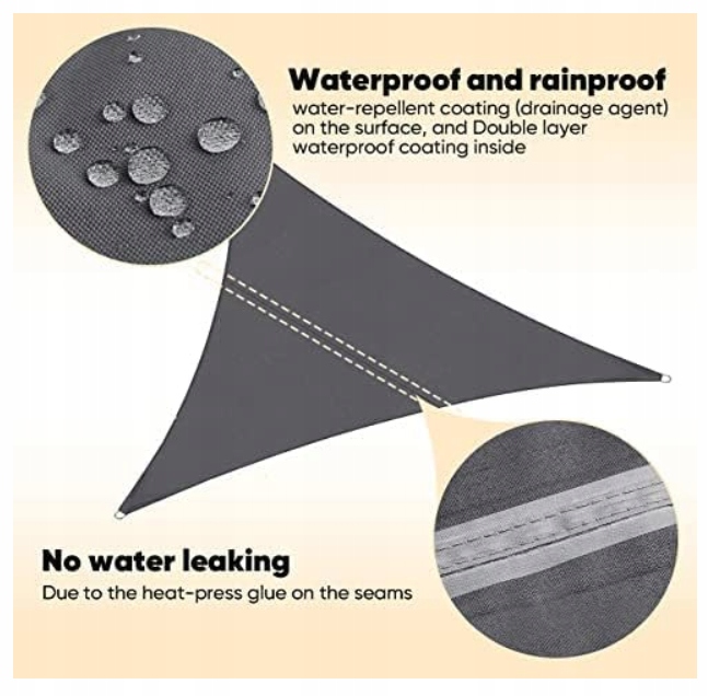✅ Przeciwsłoneczny żagiel w 100% wykonany z wysokiej jakości i gęstej tkaniny poliestrowej, wodoodporny materiał na powierzchni, podwójna powłoka PU wewnątrz, trwała i bezpieczna. Jest odporny na światło, wodoodporny, rozdarcia, odporny na warunki atmosferyczne i wolny od pleśni i plam.