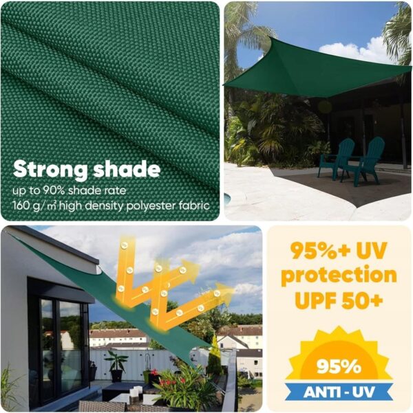 ✅ Przeciwsłoneczny żagiel w 100% wykonany z wysokiej jakości i gęstej tkaniny poliestrowej, wodoodporny materiał na powierzchni, podwójna powłoka PU wewnątrz, trwała i bezpieczna. Jest odporny na światło, wodoodporny, rozdarcia, odporny na warunki atmosferyczne i wolny od pleśni i plam.