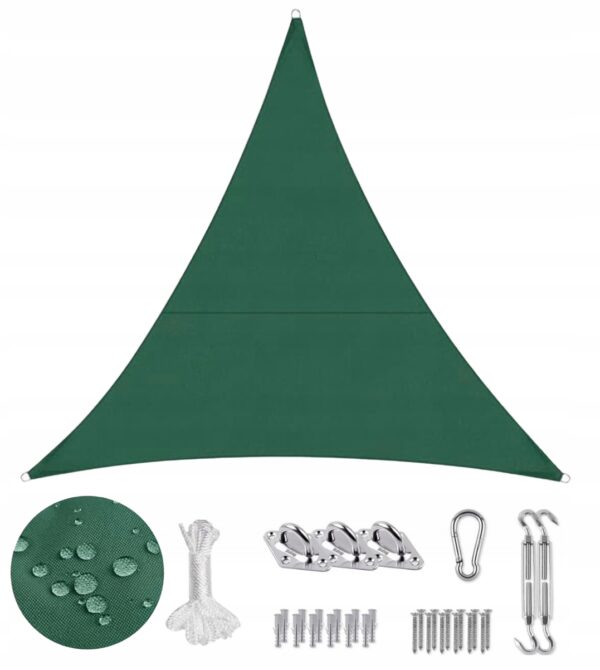 Sekey Żagiel przeciwsłoneczny 3x3x3m zielony, PES Poliester z zestawem montażowym