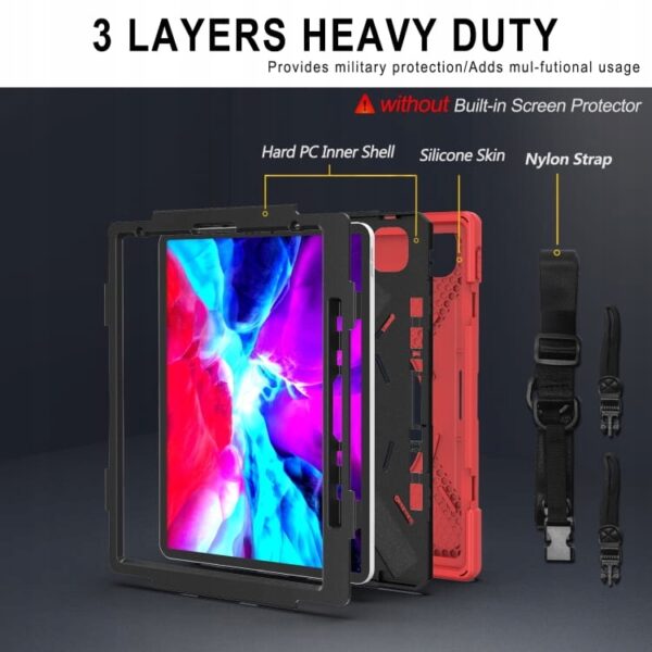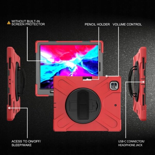 Shockproof Pancerne Etui Obudowa do iPad Pro 12.9 2022/2021,2020,2018, czerwone