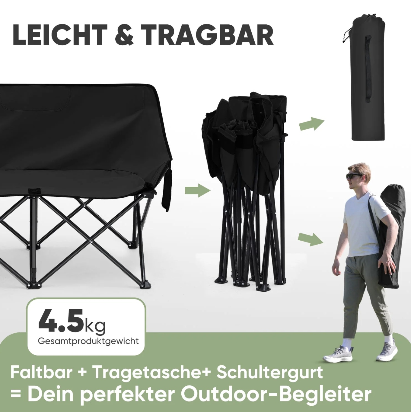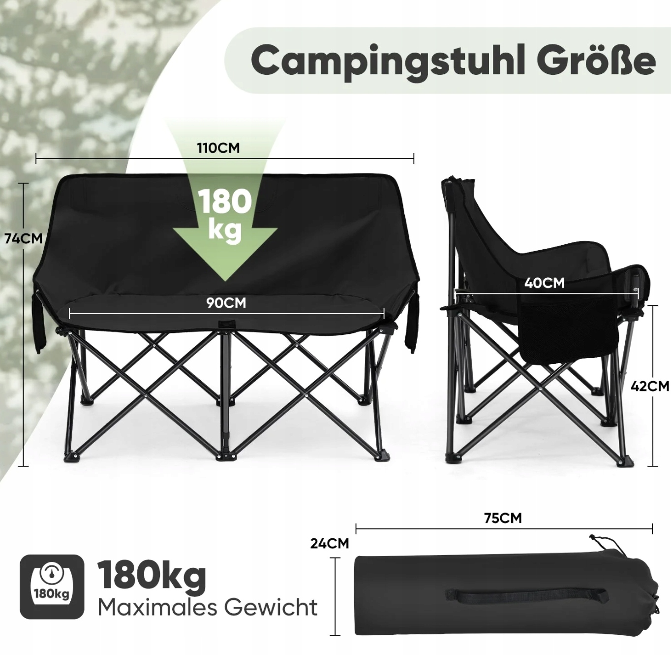 Sunula składana sofa campingowa 2 osobowa 150 kg czarna