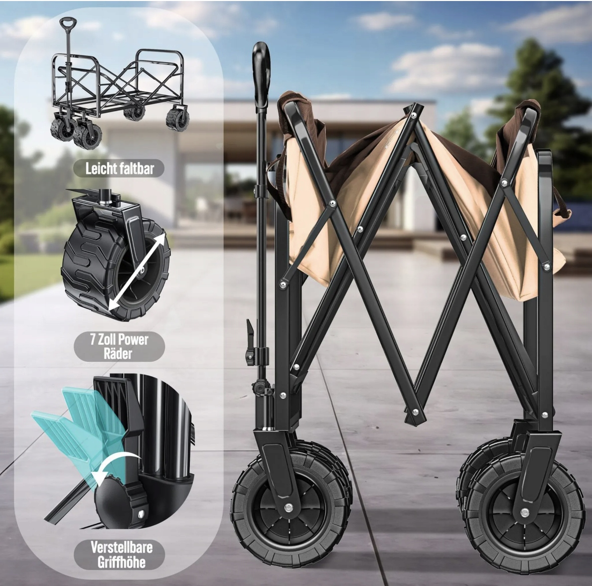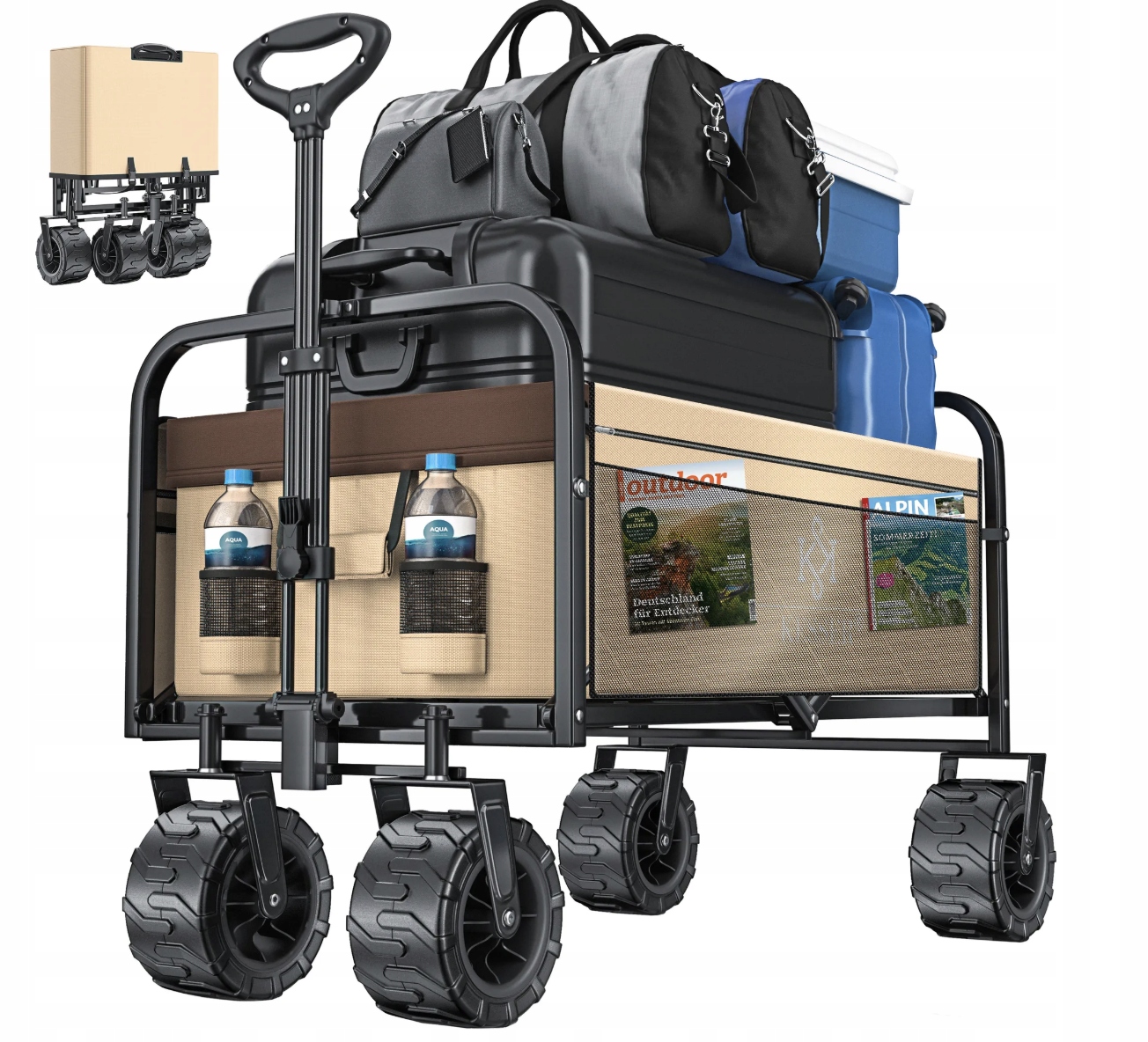 ✅ KESSER Składany wózek transportowy z szerokimi kołami – idealny na każdą okazję!