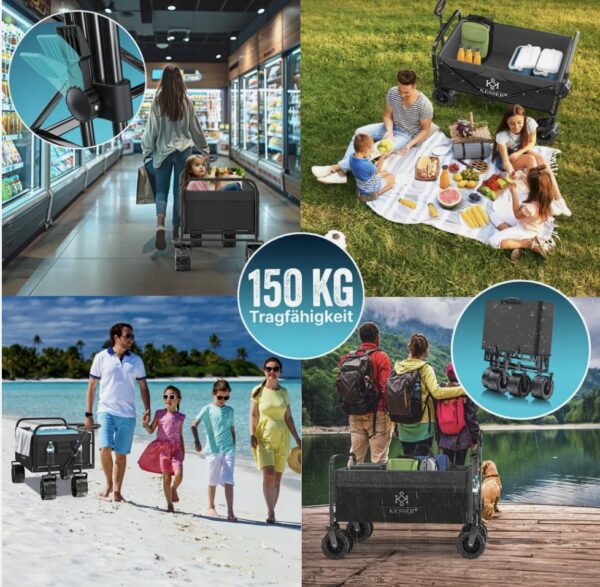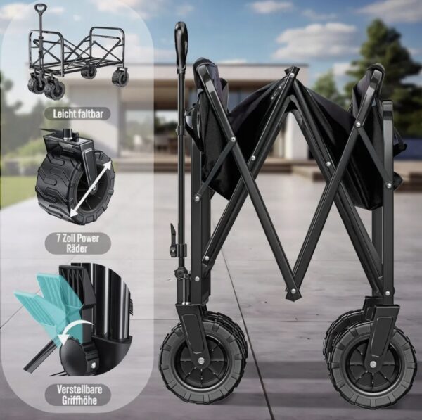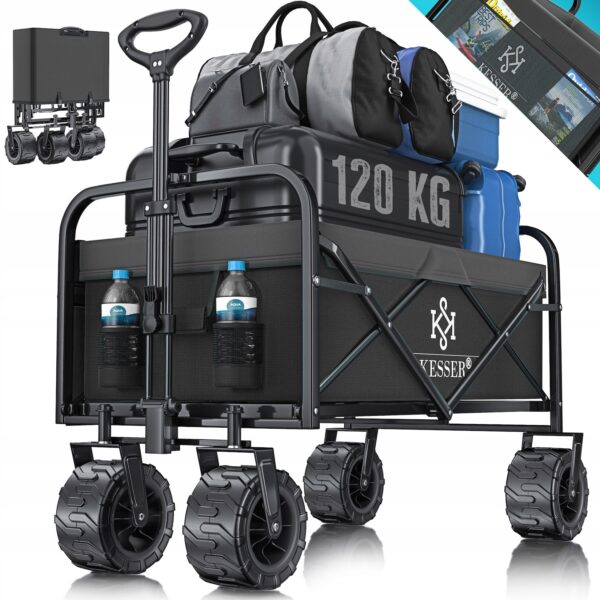 ✅ KESSER Składany wózek transportowy z szerokimi kołami – idealny na każdą okazję!