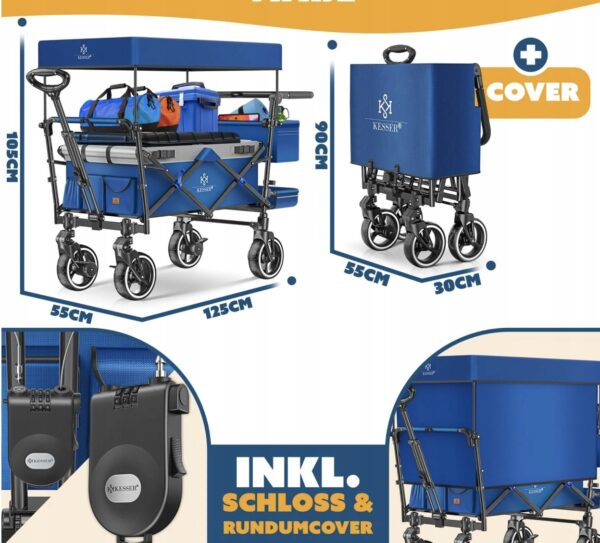 Wielofunkcyjny wózek ręczny KESSER GTS-9100 to idealne rozwiązanie dla każdego, kto potrzebuje niezawodnego i mobilnego sposobu transportu w różnych warunkach. Sprawdzi się w ogrodzie, na budowie, podczas zakupów, na plaży, festiwalach czy wyjazdach rodzinnych.