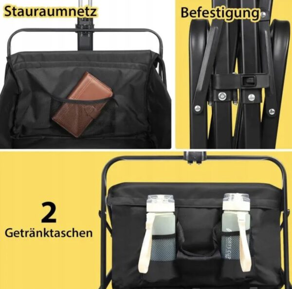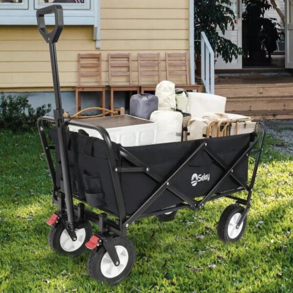 Sekey 100L / 200 kg – składany wózek transportowy z hamulcem i kołami z pełnej gumy – czarny