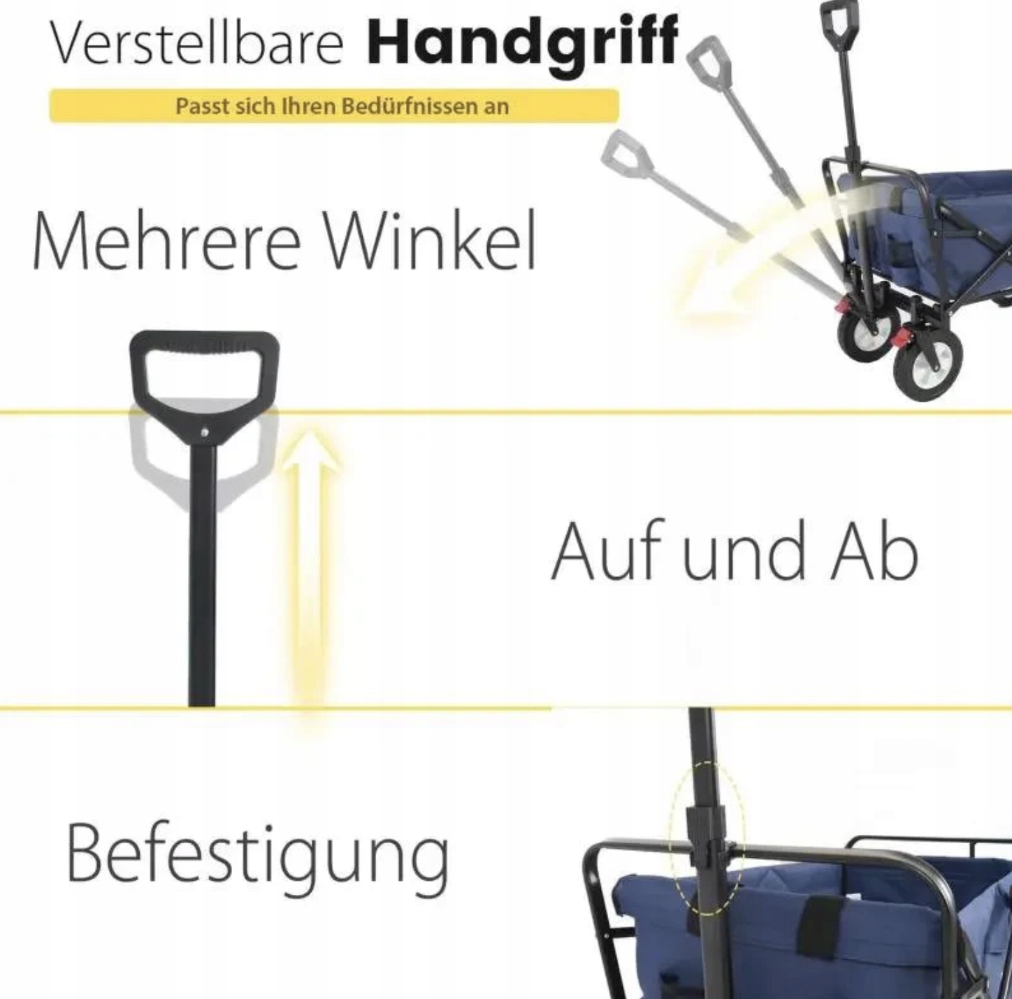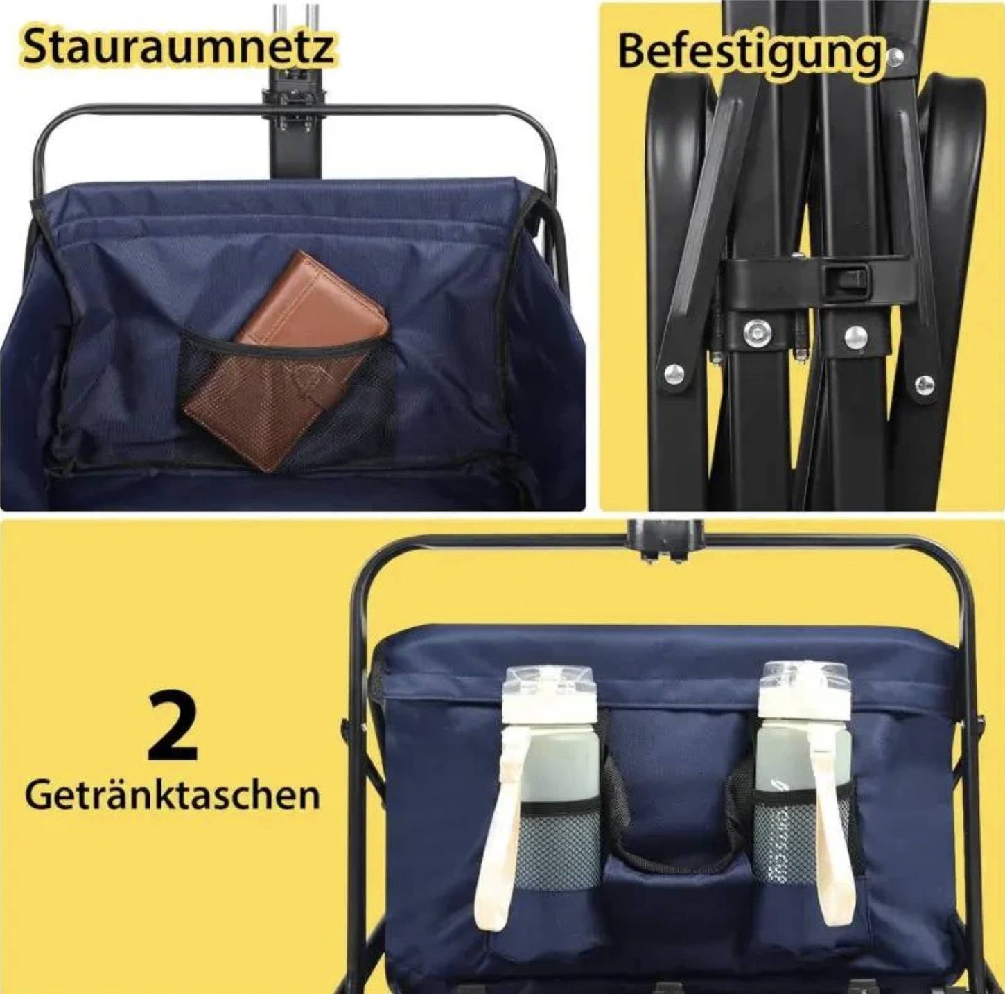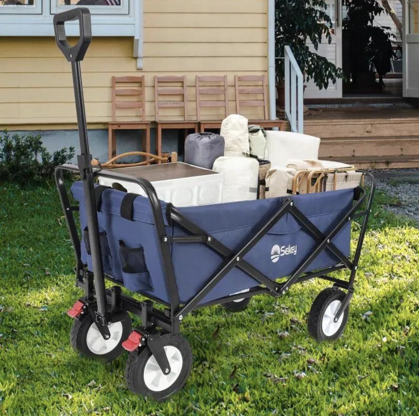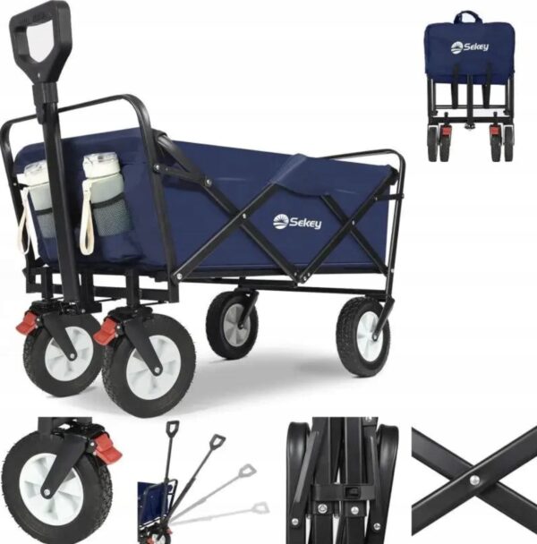 Sekey 100L / 200 kg – składany wózek transportowy z hamulcem i kołami z pełnej gumy – granatowy