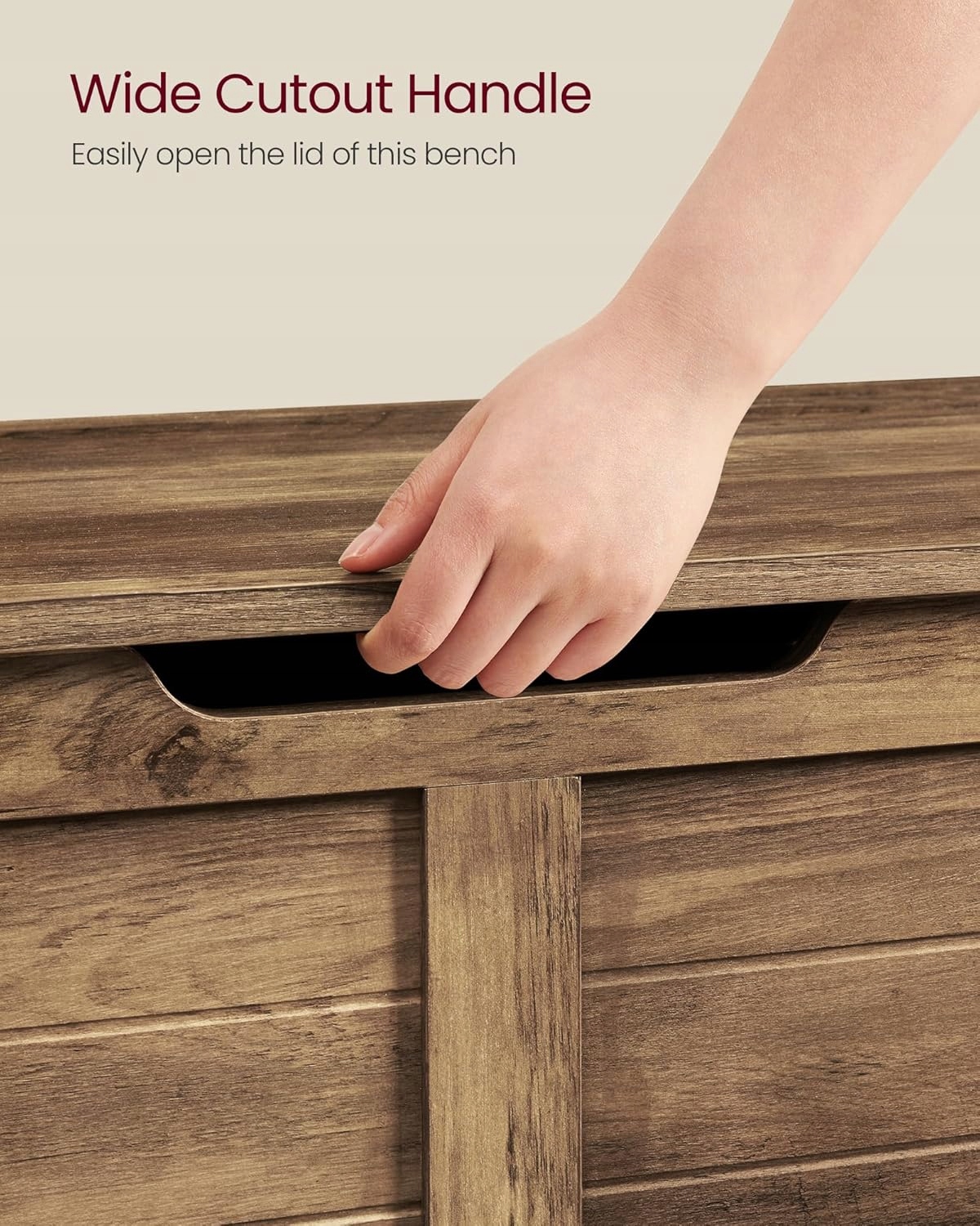 Funkcjonalna skrzynia VASAGLE łączy w sobie wygodne siedzisko i pojemny schowek, pomagając utrzymać porządek w domu. Idealnie sprawdzi się w przedpokoju, sypialni lub salonie jako ławka do siedzenia i miejsce na przechowywanie koców, poduszek czy butów.