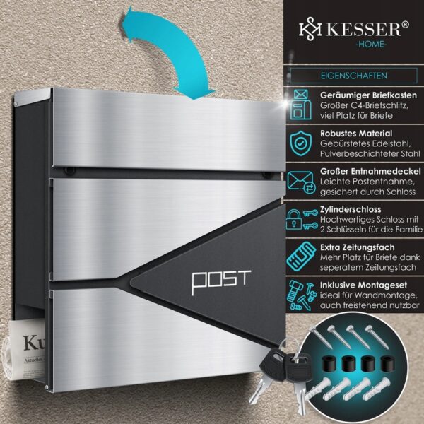 Skrzynka na listy z gazetnikiem KESSER srebrny