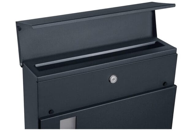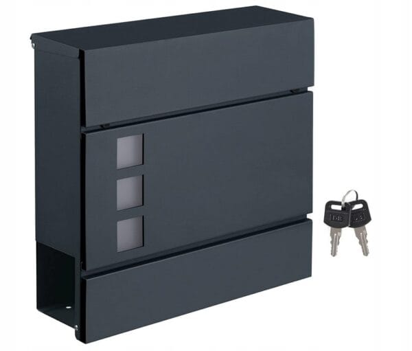 Nowoczesna skrzynka na listy to praktyczne i estetyczne rozwiązanie do każdego domu. Elegancki design oraz klasyczny antracytowy kolor sprawiają, że idealnie komponuje się z nowoczesną elewacją i drzwiami wejściowymi.