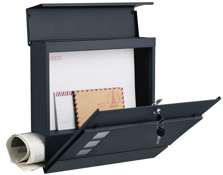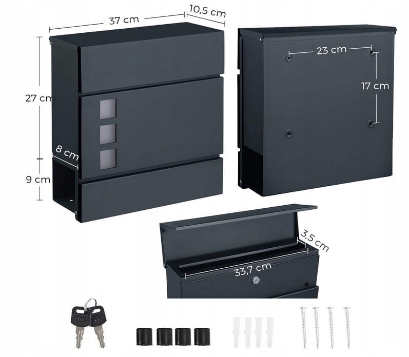 Skrzynka na listy z gazetnikiem zamykana stal antracyt SONGMICS