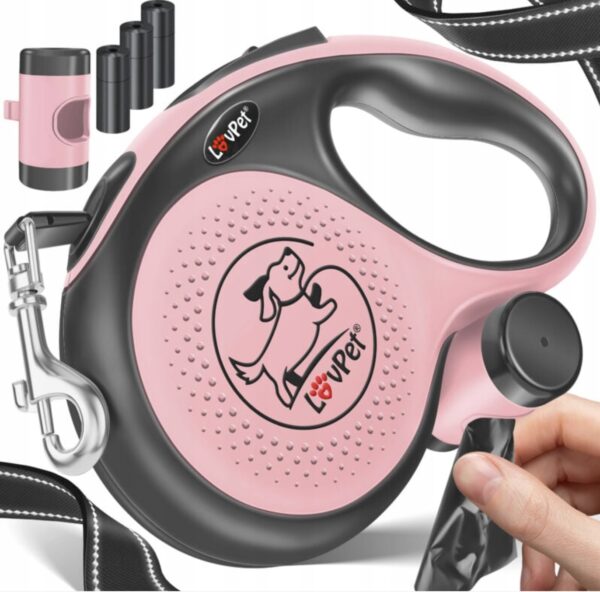 Lovpet Smycz dla psów 5 m, dla małych i dużych psów, 50 kg, wysuwana, ergonomiczny i antypoślizgowy uchwyt, przedłużenie linki 360°