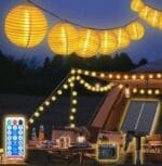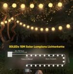 ✅ Lampy solarne SALCAR do użytku na zewnątrz: lampiony LED o długości 15 m + kabel przyłączeniowy 2 m, 50 diod LED; temperatura barwowa: 3000 K; odstęp między lampami: 31 cm; wodoodporność IP44.