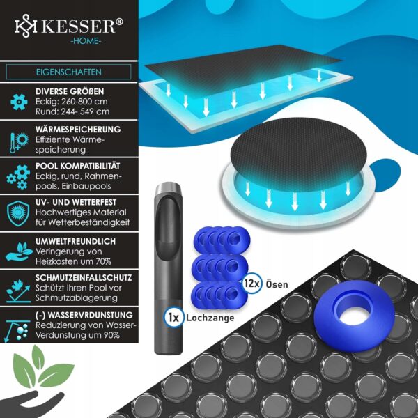Ciesz się przyjemną temperaturą wody w swoim basenie bez wysokich kosztów energii. KESSER® solarna mata grzewcza to idealne rozwiązanie dla osób szukających ekologicznego, oszczędnego i skutecznego sposobu na podgrzanie wody w basenie oraz zabezpieczenie jej przed zanieczyszczeniami.