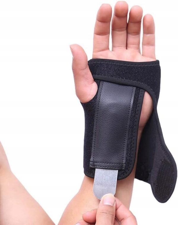 • Pasek na nadgarstek z podwójną metalową szyną, aby poprawić położenie nadgarstka bez szkody dla krążenia krwi – zaprojektowany zgodnie z strukturą ludzkiej ręki.