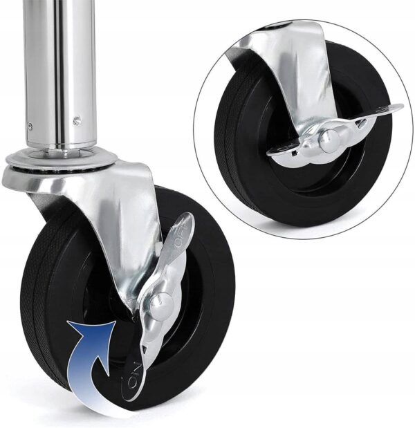 ✅ Mobilność i blokada – 4 obrotowe kółka 360°, w tym 2 z hamulcem, umożliwiają łatwe przemieszczanie i stabilne ustawienie