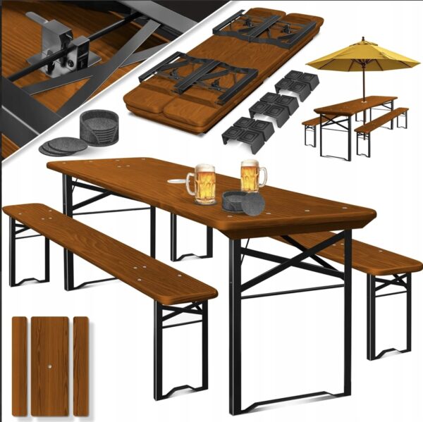 – W tym stół do namiotu piwnego, 2 ławki piwne i zestaw ochraniacza podłogowego