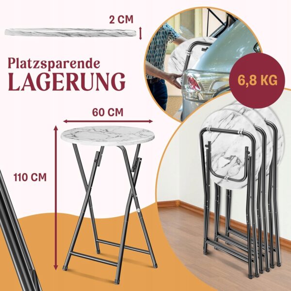Funkcja składania pozwala na szybkie rozłożenie i złożenie stołu bez użycia narzędzi. To rozwiązanie idealne dla osób ceniących elastyczność i oszczędność miejsca – po zakończeniu imprezy stół można bez trudu przechować.