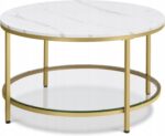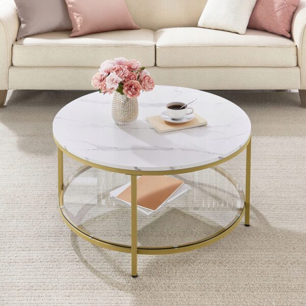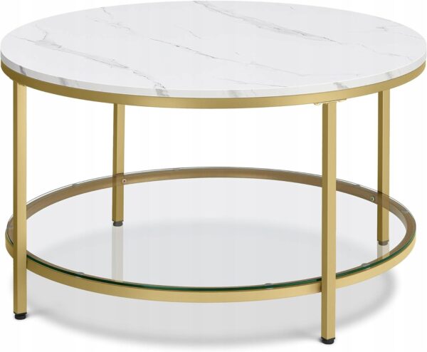 Stolik kawowy marmur szkło hartowane złote nogi nowoczesny VASAGLE