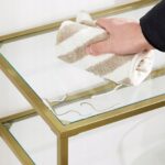 ✅ złota stalowa rama i półki z hartowanego szkła