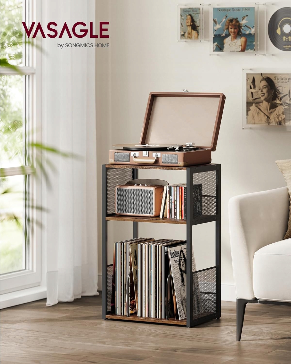 Stylowy stolik pod gramofon VASAGLE to idealne rozwiązanie dla miłośników muzyki i płyt winylowych. Pozwala stworzyć uporządkowaną i elegancką strefę odsłuchu w salonie, sypialni lub gabinecie.