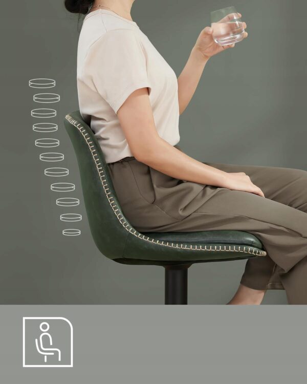 Zestaw 2 stołków barowych VASAGLE to połączenie nowoczesnego designu z wysokim komfortem użytkowania. Pikowane siedzisko w kolorze leśnej zieleni i stabilna stalowa konstrukcja sprawiają, że krzesła świetnie pasują do kuchni, jadalni, wyspy kuchennej lub domowego baru.