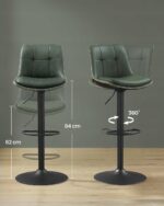 VASAGLE stołki barowe regulowane obrotowe z oparciem zielone 2 szt