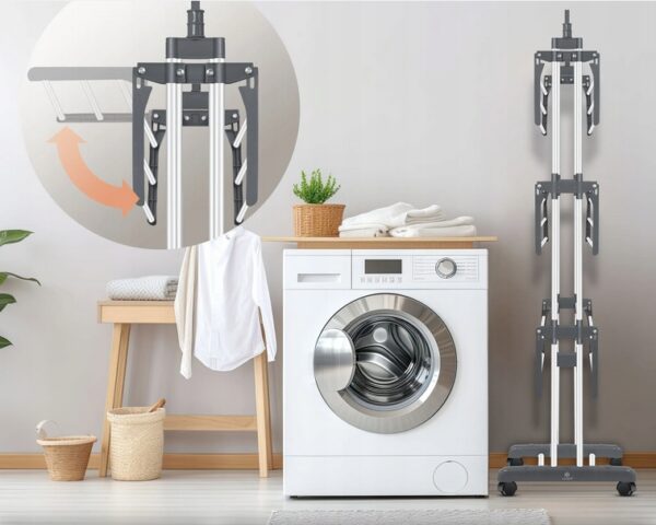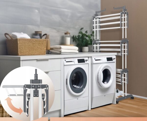 Wieszak na pranie KESSER to ostateczne rozwiązanie, aby efektywnie suszyć i organizować Twoje pranie. Ten wszechstronny wieszak został zaprojektowany z myślą o oszczędności miejsca, pojemności i stabilności.