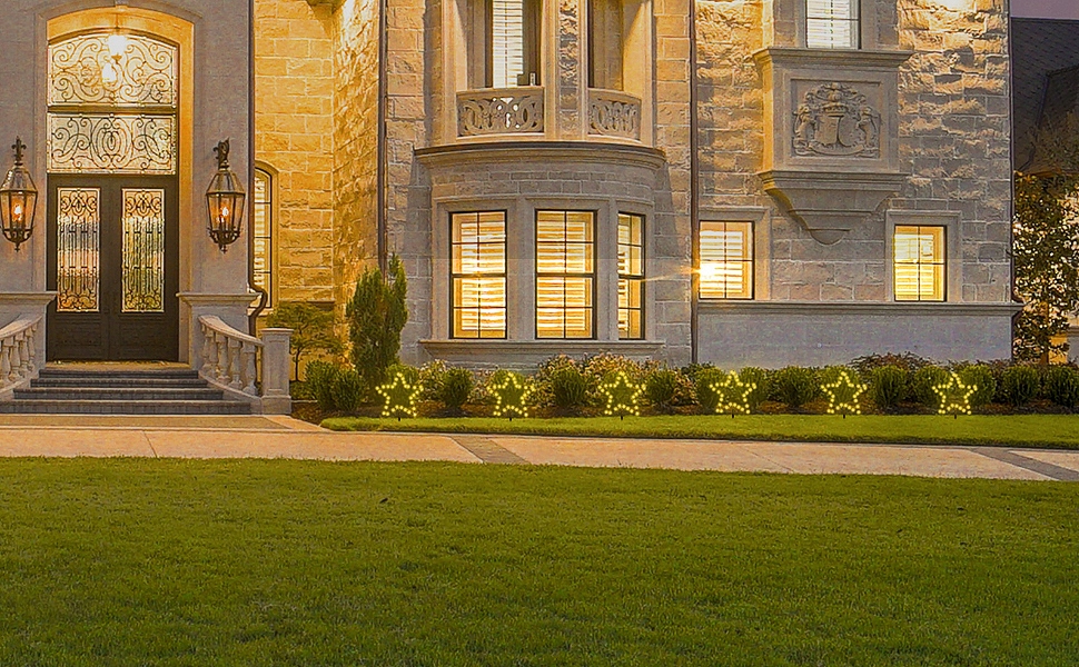 ✅ Pięciokątna gwiazda z żelaza artystycznego: Unikalna struktura pięciokątnej gwiazdy wykonanej z żelaza artystycznego, ciało lampki owinięte wysokiej jakości miedzianym drutem, co zapewnia solidność i piękny wygląd. Cały przewód zasilający jest ciemnozielony, co sprawia, że jest mniej widoczny na trawie i nie psuje estetyki ogrodu. Zestaw zawiera trzy elastyczne podpory wykonane z wysokiej jakości twardego plastiku, które ułatwiają montaż.