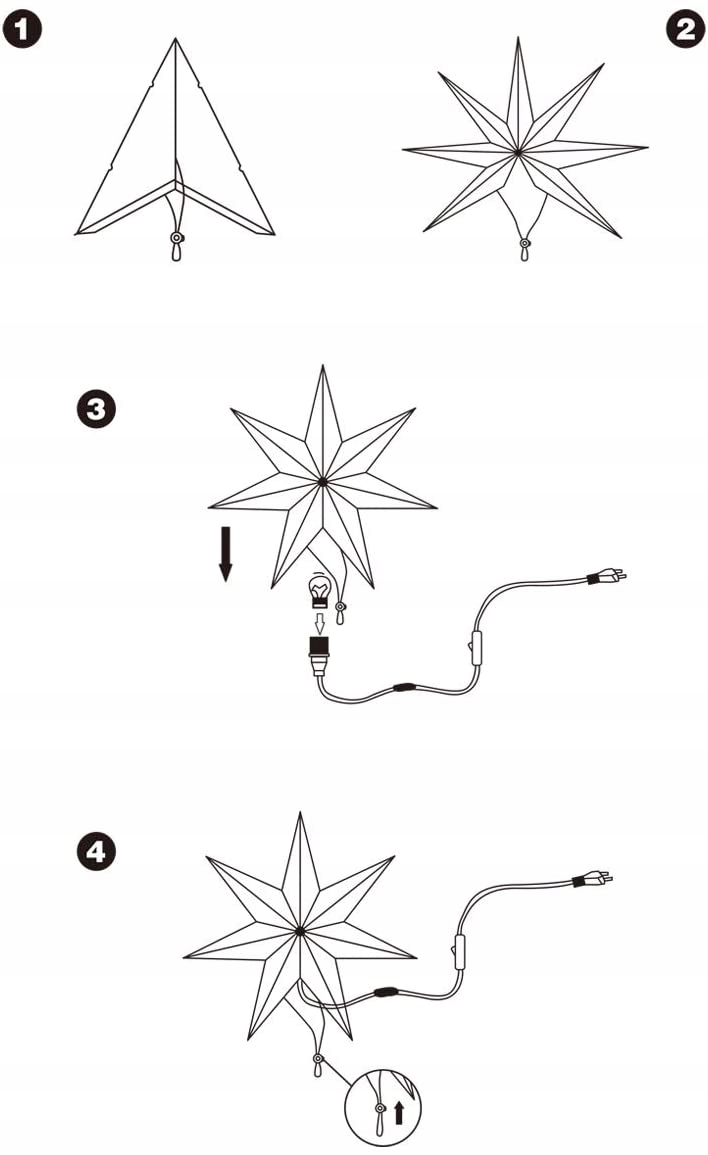 Łatwa instalacja: Wystarczy złożyć papierową gwiazdę i umieścić w jej wnętrzu żarówkę. Trzymaj papierową gwiazdkę suchą.